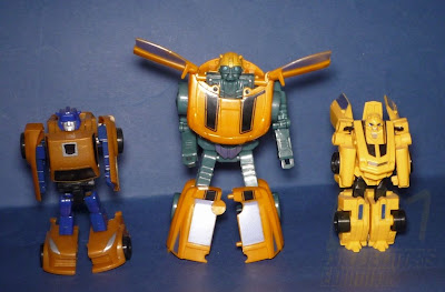 Comparado com um Bumblebee Reveal the Shield Legends à esquerda da foto, e um Bumblebee Movie Legends à direita.